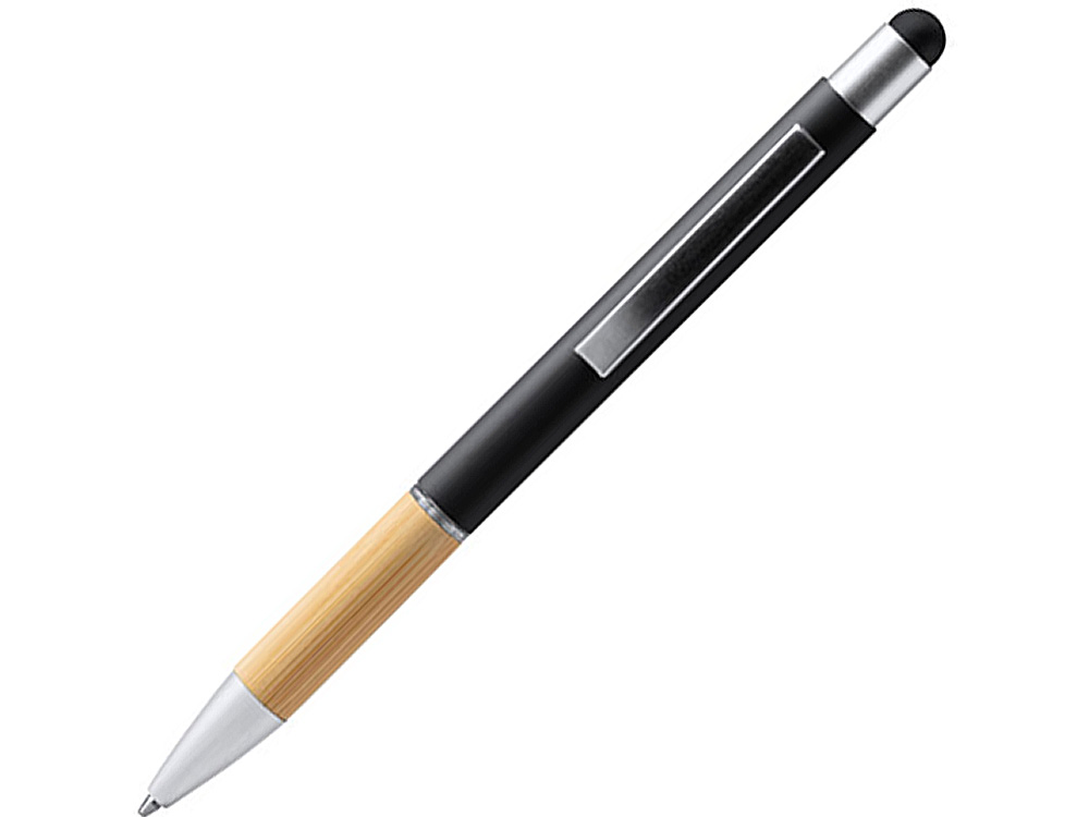Элегантная металлическая шариковая ручка с матовым покрытием, бамбуковой ручкой и стилусом.